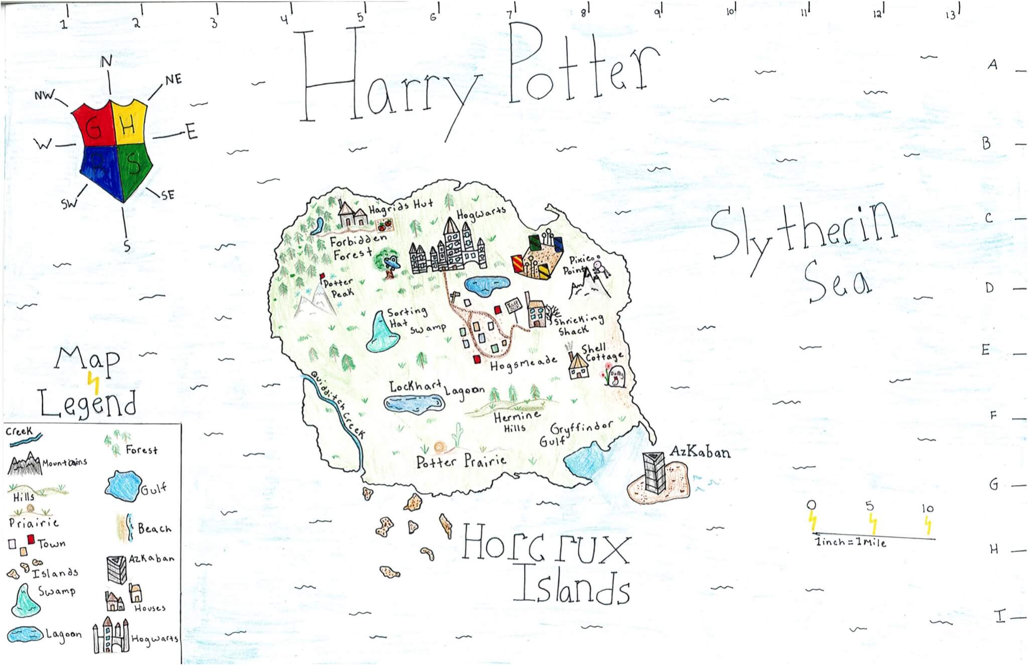 Honorable Mention for Judges’ Favorite Fiction-Related Map: Harry Potter by Allyson H. from South Berwick (Marshwood Great Works School, Mrs. Girouard’s Class, 5th Grade)