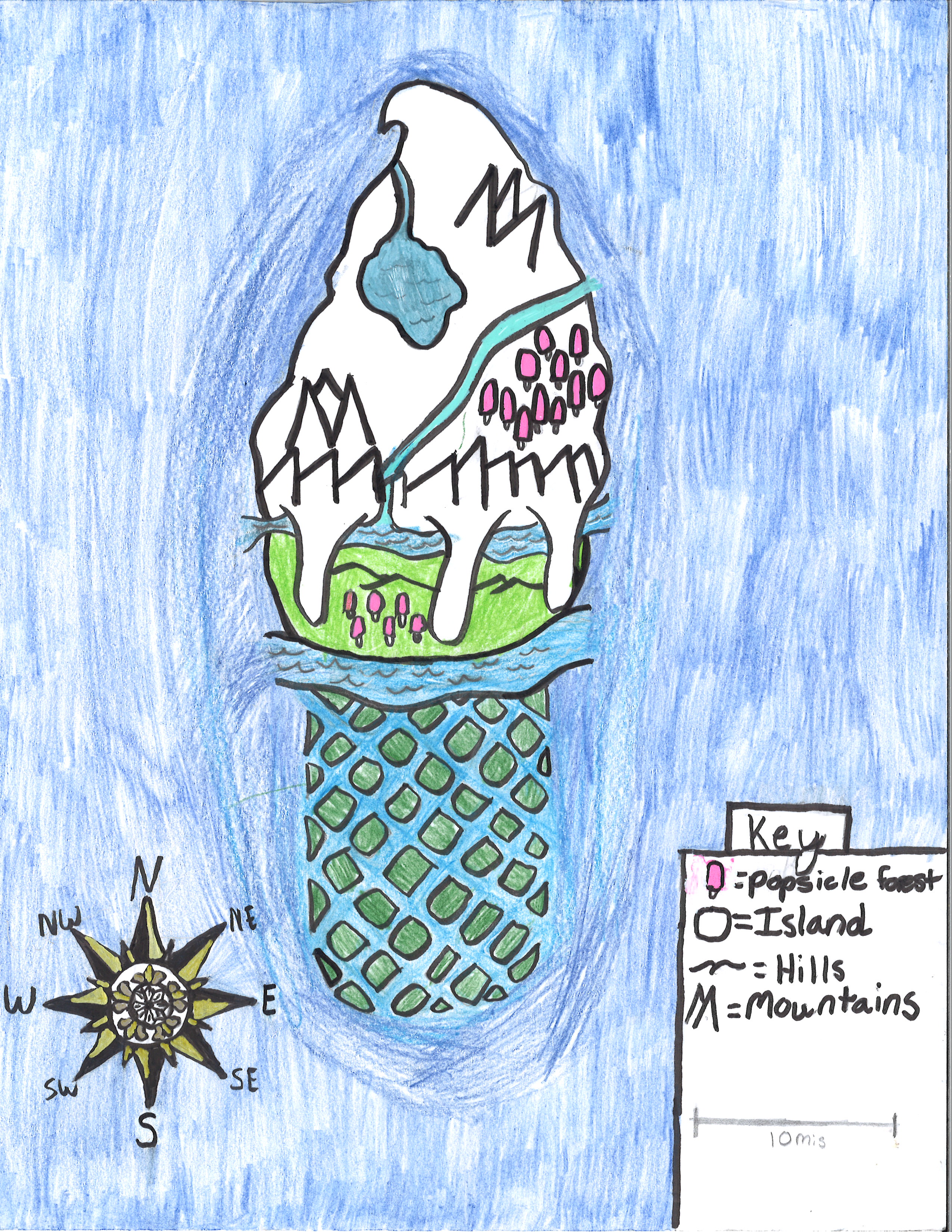 Honorable Mention for Judges’ Favorite Food Map: Picnic Brunch Island by Paige J. from York (York Middle School, Mrs. Bernier’s Class, 6th Grade)