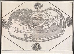 Claudius Ptolemaeus (commonly called Ptolemy), greatest of all geographers and cartographers of classical antiquity, lived in Alexandria, Egypt during the second half of the second century AD. Successive editions of Ptolemy's Atlas, Geographia, continued to be produced in many editions in the fifteenth, sixteenth, and early seventeenth centuries as the basis of development in western cartography On this Reisch 1504 version of Ptolemy's world, the four sides are embellished with personifications of the four primary winds, to which the cartographer gives their Latin and Greek names. Additionally, he uses the regional names of Septentrio, Oriens, Occidens, and Meridies. Meridies, designating south , is the position of the sun at its meridian--midday.