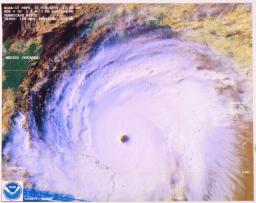 Hurricane Mitch (T20) in 1998 was one of the deadliest in history, with wind speeds reaching a peak of 180 MPH. Over 9,000 lives were lost in Honduras and Nicaragua. In Honduras alone, 50% of the agricultural crop was wiped out, 70,000 houses destroyed or damaged, and 92 bridges made impassable, isolating communities and preventing aid from reaching them. The loss of life and extensive damage came not from the force of Mitch's winds, which were diminished once over land, but the very slow rate of movement as it hovered there. This produced 35.89 inches of rain, causing flash floods and mudslides. The image here was produced from data received from the Geostationary Operational Environmental Satellite-8 (GOES-8) and the Polar Orbiting Environmental Satellites (POES) NOAA-12 and NOAA-14.