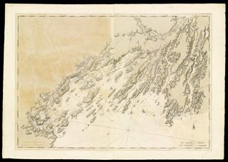 The English victory in the French and Indian War (1756-63) produced both a new conception of an English 'empire' stretching from Qu‚bec to Florida and a need to produce a comprehensive survey of that empire. An engineer and hydrographer, Samuel Holland, was given charge of the survey north of the Potomac River in March 1764. Between August 1770 and October 1773, Holland and his team of six surveyors, 35 assistants, and four local guides surveyed the more than 3,000 miles of New England coastline, estuaries, and islands. This chart of Casco Bay is typical of the large-scale maps produced under Holland's direction. The emphasis is on the coastal waters, with sand bars and rocks being especially prominent. Land features were mapped only as they would be seen by sailors: hills, towns, and areas under cultivation. All of Holland's work was engraved and published by J. F. W. Des Barres in the monumental Atlantic Neptune (1774-80), which comprised a few coasting charts and well over 250 large-scale maps such as this.