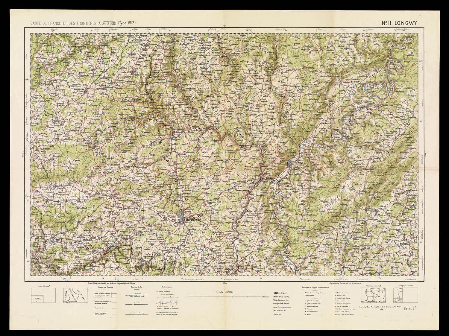 One difficulty faced by the American Expeditionary Force [AEF] upon their arrival on the Western front was the lack of adequate maps of the area. Many of the key locations in the war had not been surveyed in several years or decades. Thus, the cartographic knowledge available to the AEF was often outdated or inadequately scaled. The scale of this particular map is only 1:200,000; the preferred scale for battle maps was 1:10,000 or 1:20,000.