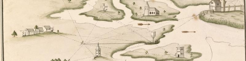This manuscript map is unrelated to Carleton’s large, printed maps of Maine (1798-1802; see item 9). Those maps presented a new geography grounded on detailed surveys of each town made only in 1795-1797.