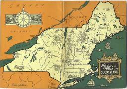 Oil companies used historical events to promote travel, and therefore increase sales of their products, thereby reinforcing the mythic imagery of the automobile. A 1941 road map used the venerable device of drawing a curtain back to reveal the stage of history, and showed an automobile driving right into the past: the map would lead the tourist to sites of historic interest, such as old forts and former mining towns [107]. Oil companies often provided colorful special inserts that served as historic and scenic guides [110, 112, 113]. A 1925 map guide offered historic tours in "Soconyland" which, in this instance, comprised much of the Northeast [109]. Other maps commemorated past events, such as a 1932 Standard Oil map of Pennsylvania which plotted the travels of George Washington [114]. (Coincidentally, the National Geographic Society also produced their map version of the same theme that year.) One of the more dramatic examples of cover art appeared in 1925, to honor the events of the battle of Gettysburg [115]. Finally, past events were shown on a few road map covers as part of the mythic recreation of the modern motorist as an explorer and conqueror. A colorful 1931 Parco map, for example, improbably depicted Spanish "discoverers" or conquistadores making landfall, map in hand . . . but in Nebraska? [116].