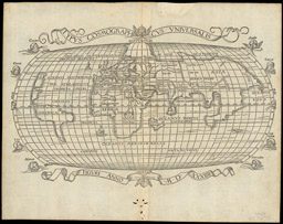 Published seven years after the previous map, this "modern" world map shows little advance in geographic knowledge. In some respects it represents a step backward. For example, Cuba ["Ysabella"] and Hispaniola ["Spagnola"] are depicted in nondescript ovoid form as the only two islands of the West Indies. The westward extent of the map is conveniently limited, presumably because of uncertainty regarding North America. The west coast of South America is, however, rendered in remarkably accurate fashion considering that the results of Magellan's exploration had not yet reached Europe. The name America is prominently placed on the southern continent.
