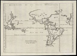 Halting progress is seen here in the depiction of the New World as two misshapen continental landmasses separated by a Central American strait. America is now firmly established as the name of the southern continent. Geographic confusion is evident in the naming of the northern continent. It is labeled "Terra de Cuba," a name used earlier by Waldseemuller in designating the northern region as part of Asia, while other maps of the period apply the name "Cuba" or "Cuba Insula" to the island now known by that name. The creator of this map apparently concluded that Columbus was right in thinking that Cuba was part of the mainland, but wrong in identifying the mainland as part of Asia. In the process he has omitted not only the Island of Cuba but all of the West Indies.