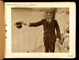 This volume contains eight sepia-toned illustrations of Shackleton on his last expedition, including the Quest “Frozen in the Ice” and Shackleton’s burial cairn: “We left him under the Southern Cross.” This copy of the album was signed by Captain Frank Worsley.