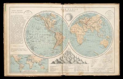 In the nineteenth century, American schools paid great attention to teaching geography and there was a large market for new and improved versions of educational geographies, often written by women. Such work is represented here in Emma Willard’s The World as Known to the Ancients and Sarah Cornell’s The World in Two Hemispheres. Such works provide a unique resource for understanding the attitudes, ambitions, and priorities of America at a time of rapid change.