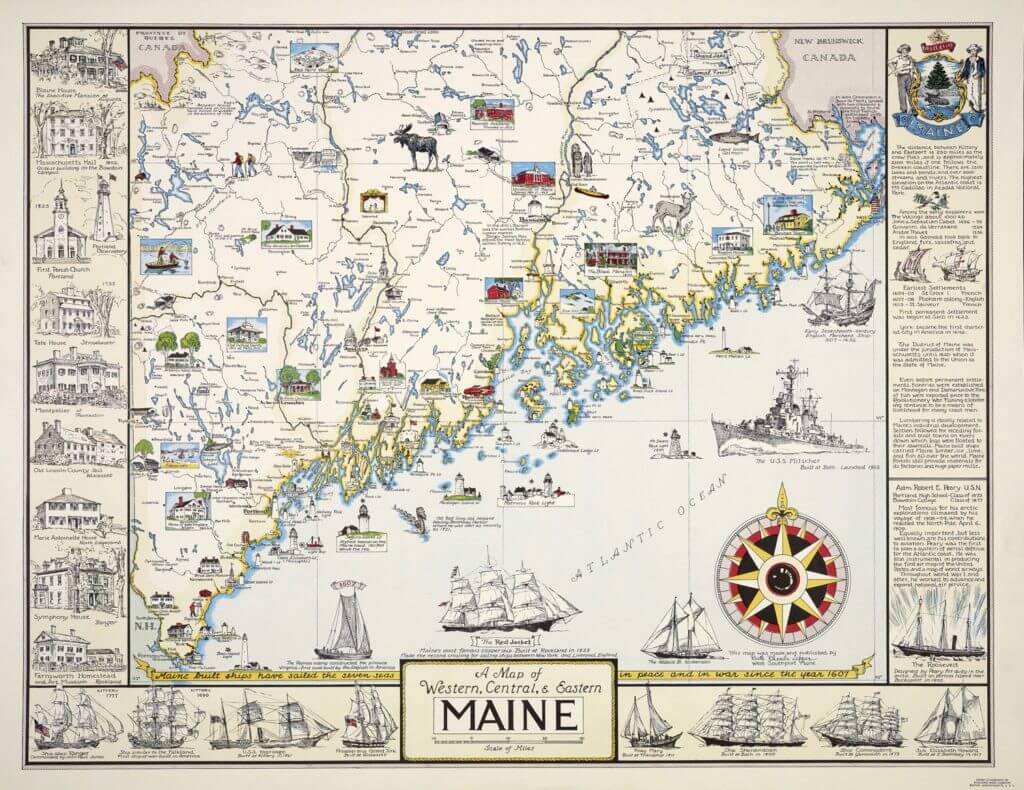 “Map of Western, Central, and Eastern Maine” by Ruth Rhoads Lepper (1952)