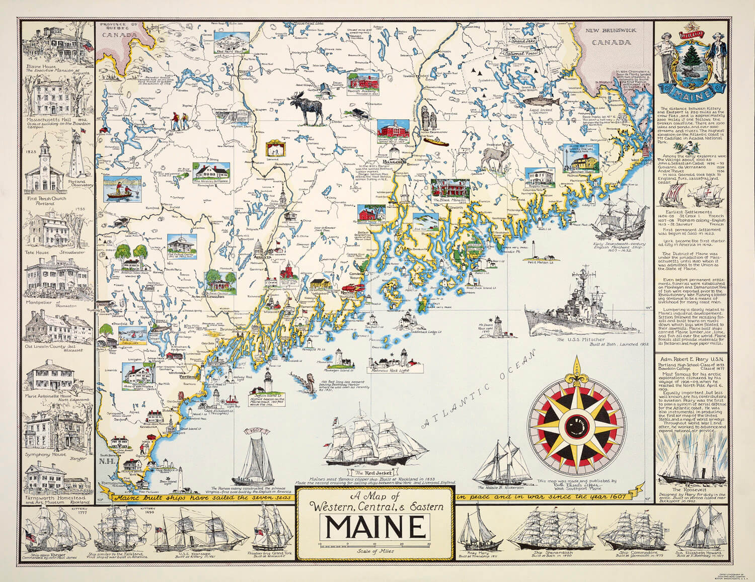 “Map of Western, Central, and Eastern Maine” by Ruth Rhoads Lepper (1952)