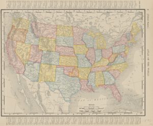 1866, Theodore Frank, “Map of the United States and Territories” – https://oshermaps.org/map/1125 – Letter Clue: U