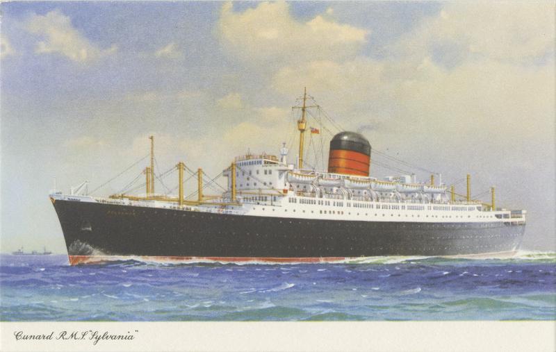 Postcard of Cunard Line’s “Sylvania” (between 1957 and 1968). OML Morse Collection.