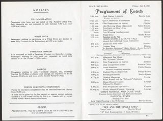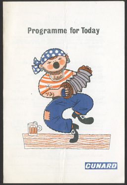 The Sylvania published a new ‘Programme for Today’ for every day of the voyage. Events were scheduled from mid-morning until late into the evening but, as the following examples demonstrate, the basic structure of the schedule was used repeatedly. This familiar pattern could be a source of comfort or unease among passengers. This program was for Friday, 16 April 1965.