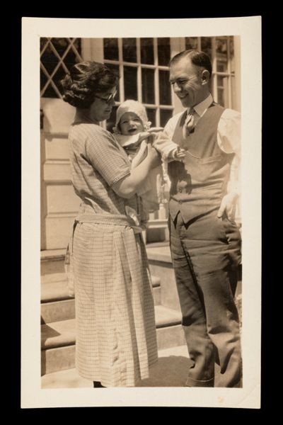 "Three Happy People" at Grandma Hunter's in Jenkintown. Bill - 6 months old.